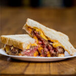 WITH STREAKY BACON, CHILLI JAM, MONTEREY JACK CHEESE AND CHEESE SAUCE.