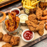 CHICKEN WINGS WITH STICKY BBQ SAUCE, GARLIC BREAD, CRISPY SHREDDED CHICKEN WITH PERI PERI SAUCE AND SPRING ONION, CRISPY DUCK POPCORN,